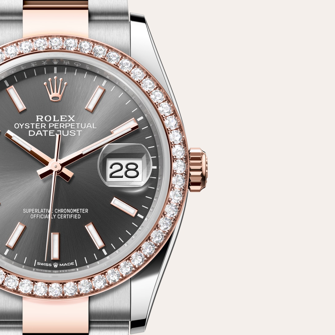 - Oyster, 36 mm, Oystersteel, Everose gold and diamonds